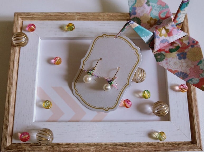 2cm×2cmの折り紙で作った鶴のピアスです。
